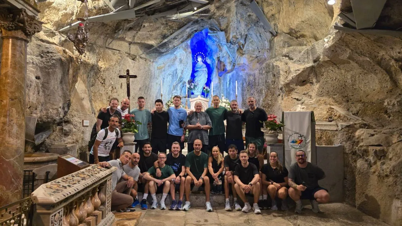 Questo il post Facebook con cui è stata comunicata la visita: “Oggi 9 agosto, lo Staff del Manchester City, con l’allenatore Pep Guardiola (uno degli allenatori più titolati nella storia del calcio) e il preparatore atletico Fabrizio Genovesi, dopo l’acchianata a piedi a Monte Pellegrino, ha fatto visita alla Santuzza, prima della partita di questa sera Palermo-Manchester City. Una preghiera silenziosa. Il saluto e la benedizione da parte del Reggente don Natale Fiorentino nella Sacra Grotta. Auguri per la partita amichevole: buon divertimento. Andrà alla caccia di un altro trofeo guidando il Manchester City alla Coppa del Mondo per Club FIFA 2025″.